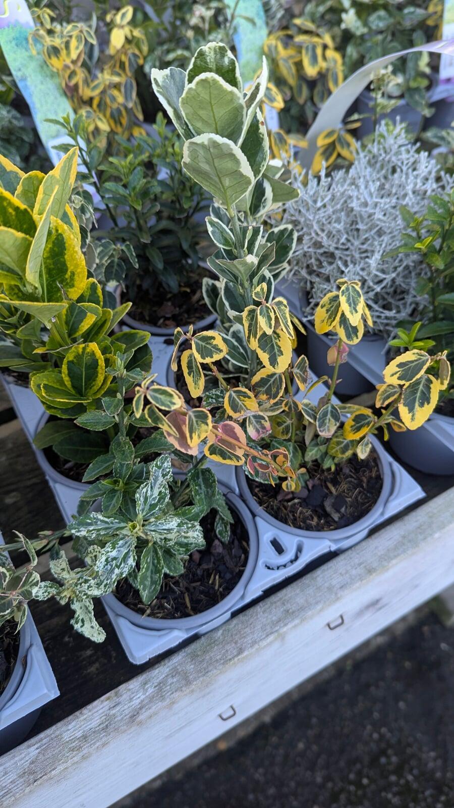 ✨ Euonymus (Variegated): For bright fill and creamy-white margins that link to the lighter perennials